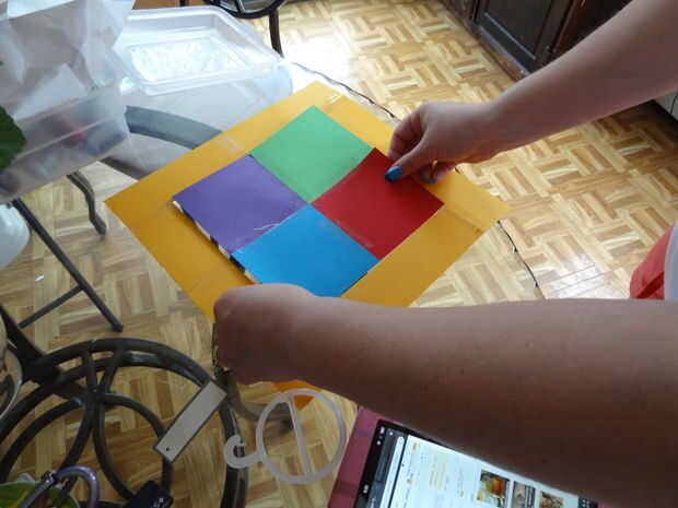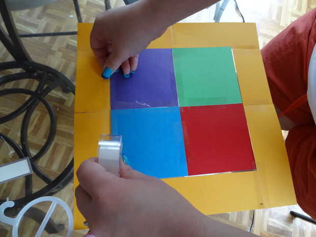 Una vez que todos los estudiantes han completado sus plazas, se estructurarán para formar un rectángulo.  Todas las plazas deben ser hacia arriba (si hasta existe).  Si casillas en blanco son necesarios para rellenos, debe agregar propagación entre sí para ser menos visibles.  Estas se celebrarán juntos con cinta adhesiva las partes posterioras.  Luego el ribete colocarse alrededor del perímetro del tejido, con el título en la parte superior.  Esto también se celebrará junto con cinta adhesiva las partes posterioras.  Si la laminación es una opción, esto ayudará a la colcha permanecer juntos y evitar que dañen.
