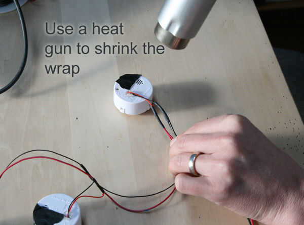 8) usando a un encogimiento de la pistola de calor la tubería.