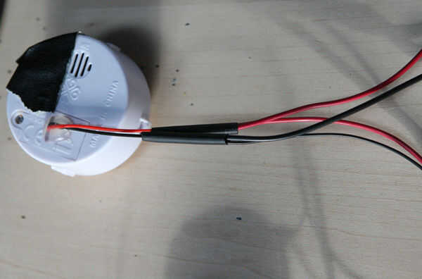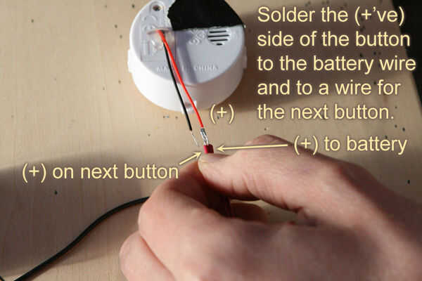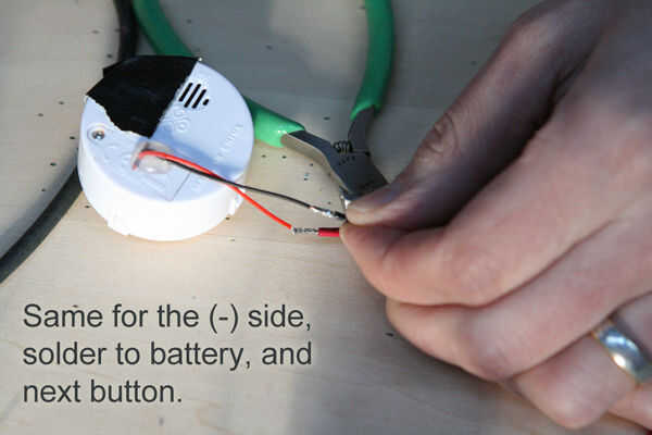 2) cortar un número de cables entre cada uno de los botones de sonido (rojo y negro 5 pulgadas de largo).