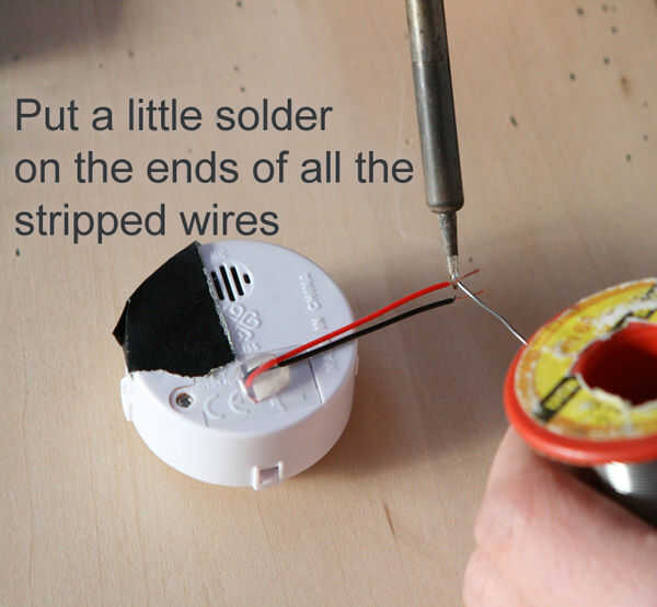 4) poner un poco de soldadura en los extremos de los cables.