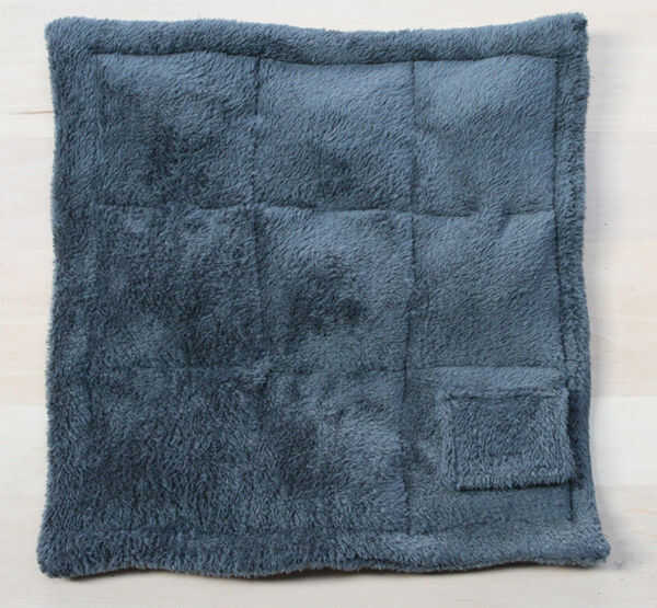 3) Coloque el portabaterías de compartimiento entre la parte posterior de la tela y la tela más pequeños cuadrada.