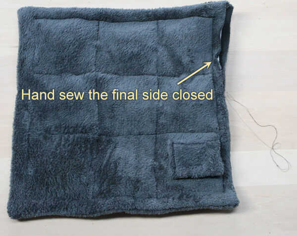9) coser el lado pasado cerrado manualmente.