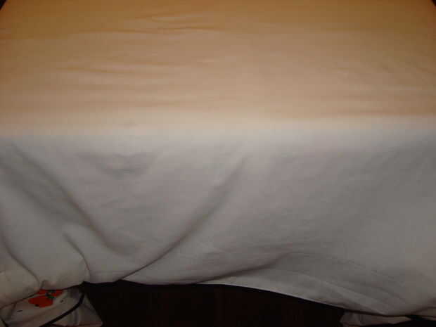 Con cuidado retire el tejido de la alfombra o la cama y colóquela sobre una tabla larga plegable de mesa o cocina centrado el tejido sobre la mesa.