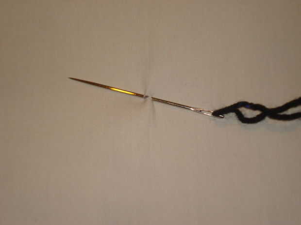 Repetir los puntos de la marca en el tejido (después de hacer los 4 puntos con el hilo como se muestra.)