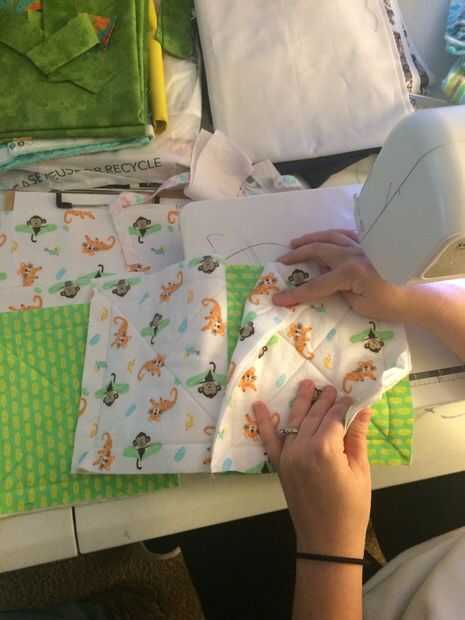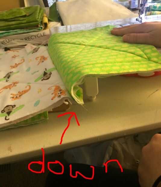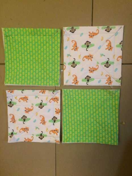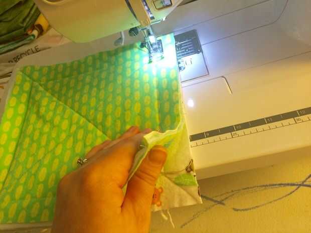 Disponer y decidir sobre un patrón de las telas sin embargo desea. A partir del final de una fila, apilar las piezas en orden, terminando con la primera pieza en la parte superior y el extremo opuesto de dicha fila en la parte inferior.
