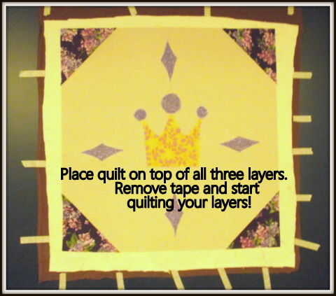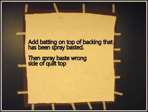 Tome el lado equivocado de la parte superior de la colcha y aplique el spray hilvanado el pegamento, luego Dale la vuelta y en la cima de bateo. Esto crea un efecto de sandwich de tres capas, que se convierten en su edredón.