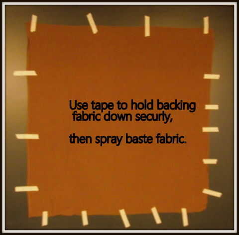 Para comenzar, presione a la tela de forro, difundirlo hacia fuera en un limpio dura superficial, el revés hacia arriba. Ahora con cinta de enmascarar, fíjela a la superficie.
