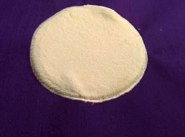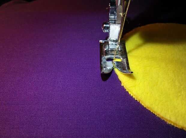 Para alcanzar el punto de seda, practiqué el retazo, muchas veces, hasta que me dieron el derecho de la configuración de la máquina de coser. Cuando por fin pensé que, cuidadosamente cosido alrededor del borde exterior del círculo (¡ yay! sin costuras plegables!).