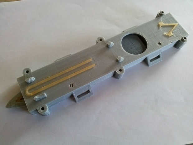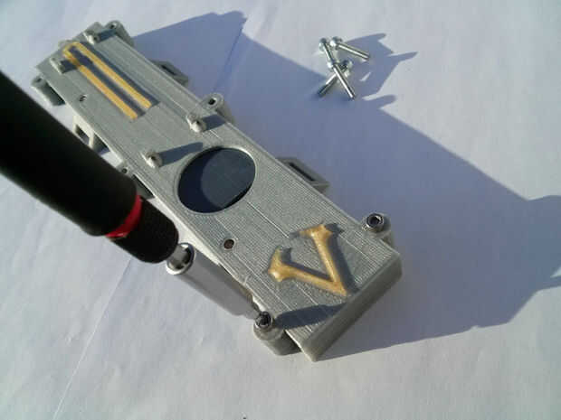 Ahora necesitarás la "primera portada", las "rayas primera cubierta" y "primero cubrir el logo" piezas, pegamento y los tornillos de M3x14mm.