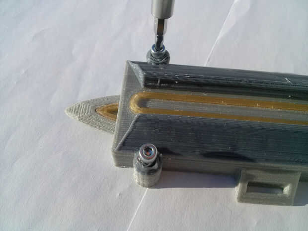 Ahora todo queda por hacer es montar la carátula "del segundo" en la "base" previamente montada. Moverse el activador hasta que encuentra el agujero en la plataforma de "switch" y luego atornille todo juntos. La hoja oculta ya está lista!