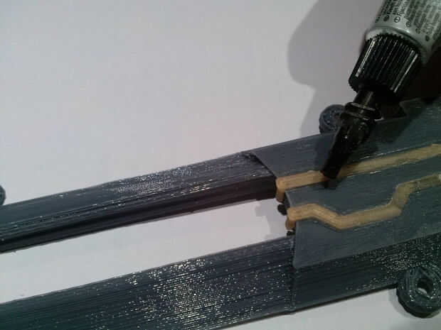 Pega las franjas en la base y deje que todo se seque. A continuación gire la tapa hacia abajo, poner el activador en su ranura y compruebe si puede conectarse al "pin activador". Si está demasiado apretado, usted necesita el pin o la cubierta de arena hasta que deslice suavemente. Luego coloque el pasador en su lugar y les pegan. Tenga cuidado de no pegar el perno o el activador a la cubierta. Después se seca para arriba, prueba otra vez para ver si todo está bien.