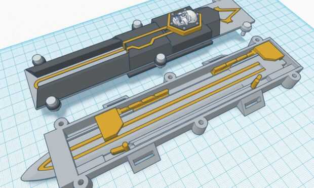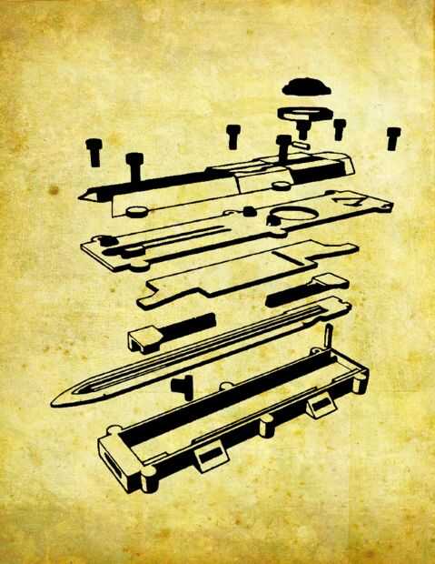 De una manera sencilla, los usos de la hoja oculta el mecanismo OTF, basa en mi diseño muchas otras ocultas las hojas que ya están hacia fuera allí. El secreto es los resortes o en este caso, bandas de goma, cuando se activa, se liberan la energía acumulada en la hoja, lo que es sacar o deslizarse en la carcasa. La goma se conecta dos partes, llamadas "sliders", uno en la parte trasera y es responsable de empujar el disco hacia fuera y otra es en la parte delantera y es el que tira la hoja en el. Entonces hay 2 "bloqueos" que mantienen la hoja en lugar de cualquier cuando su retraída o desplegadas. Finalmente hay otra pieza que se mueve también dentro del mecanismo, y es responsable de mantener la tensión de la venda de elástico. Este se llama "switch" y cuando se desliza también desbloquea la hoja en ciertas posiciones, por lo tanto liberando la tensión de la goma y finalmente moviendo la hoja. El mecanismo puede parecer un poco complicado pero es realmente bastante simple. Sin embargo es difícil de explicar, especialmente porque sólo funciona bien cuando la carcasa está cerrada, así que usted no ve realmente su funcionamiento. Además de "blade", "sliders", "seguros" y "switch" hay también algunas otras piezas como las «base», "covers" entre otras piezas decorativas. Voy a salir en más detalle en cada paso.