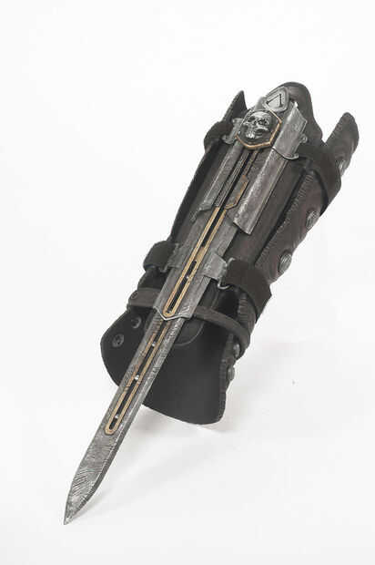 En lugar de simplemente hacer una hoja oculta funcional, pensé que sería divertido manera si podría hacerla parecer cool. Hay un montón de Creed juegos Assassins de ahora, y todos ellos tienen diferentes versiones de la hoja oculta. A pesar de mis favoritos personales son los primeros juegos que tengo que admitir que la lámina de Edward de la bandera negra de ese era bastante impresionante! Tal vez porque él era un pirata, tal vez porque hay una calavera, no sé, es que pensé que si iba a inspirarse en cualquier hoja, sería su. Así que miré la réplica oficial y decidió diseñar algo parecido. Mi intención no era hacer exactamente lo mismo, prefieren tener cierta libertad de creatividad y hacer mi propia cosa, por lo que se trata de una lámina de Edward Inspired.