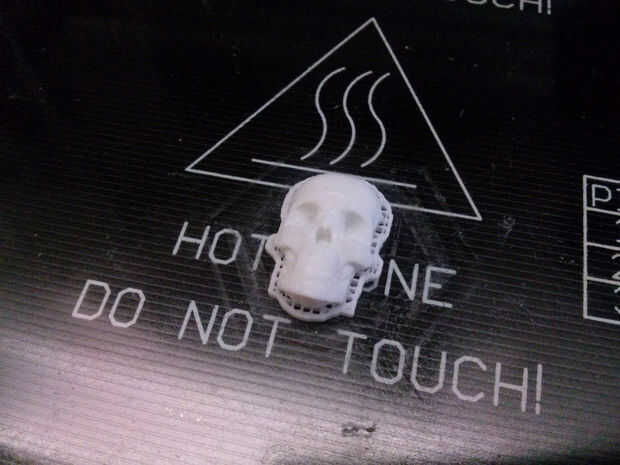 Este proyecto es relativamente grande para una impresora pequeña, sin embargo siempre he sido cuidadosa durante la fase de diseño a fin de poder imprimir todas las piezas usando una cama pequeña de como 200 x 200 mm (por ejemplo máximo. Prusa I3 área de impresión). Para hacer esto, simplemente gire el 45 º las piezas más grandes, así que a imprimirles diagonalmente, en el área de la manera más eficaz. Es apretado pero funciona! Para lograr un aspecto un poco más realista, principalmente he optado para filamentos de plata y oro PLA. Aunque también utilicé gris oscuro para la segunda tapa y blanco para el cráneo. Usé LulzBot Cura para mi software de la máquina de cortar, como mi experiencia en eLab Hackerspace dime es uno de los mejores y gratuito software de corte. La configuración de impresión era bastante normal, aunque algunas partes requieren más relleno porque se someterán a fuerzas mecánicas. Tan en promedio 40% relleno, 0.2 mm de altura de la capa, espesor de cáscara de 1,2 mm y una velocidad de 50 mm/s. Mi tamaño de boquilla de Prusa I3 es de 0,4 mm. Mayoría de las piezas es muy fácil de imprimir, aunque otras requieren de material de apoyo para imprimir correctamente. Por el apoyo he utilizado líneas como el tipo de estructura, relleno 25%, 7 mm X Y distancia y distancia de 0,2 m m Z.