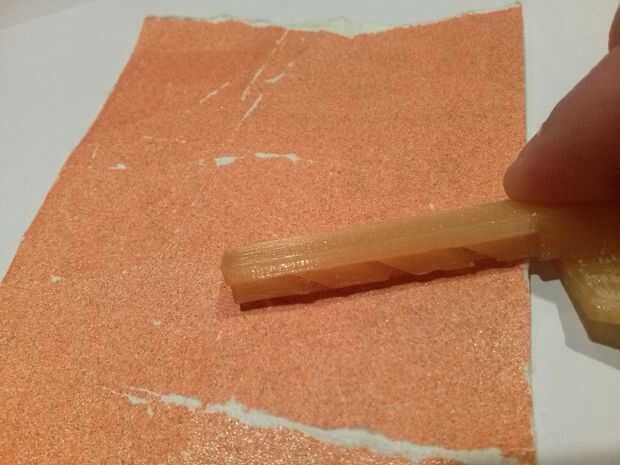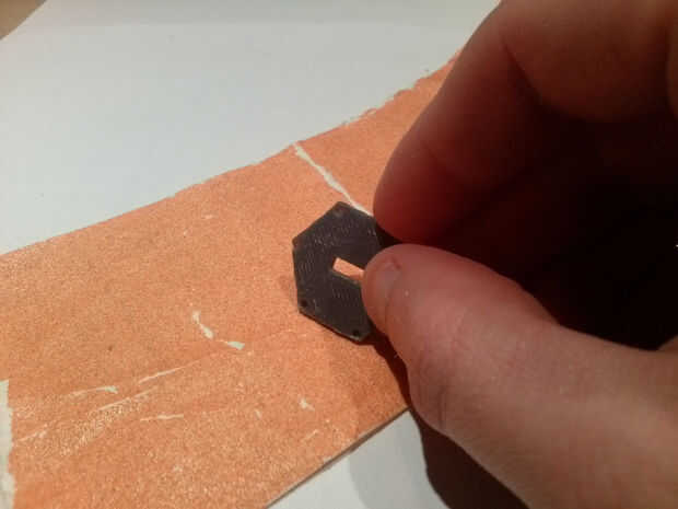 Como dije antes, no 2 impresoras hacen la misma pieza exactamente lo mismo, que dijo, habrá variaciones de tamaño pequeño. No pueden parecer mucho, pero este proyecto necesita precisión para trabajar, incluso pequeñas diferencias de tamaño hará una gran diferencia en el resultado final. Partes deben deslizarse en cada bien y libremente, usted no puede sentir ninguna fricción, si, siempre lijar, porque aún no está listo. Primera pieza que usted puede comprobar para ver si necesita lijado es la "hoja", sólo Deslice dentro de la "base" y ver cómo se siente. Si no cabe, necesita mucho lijado, si hace pero se queda atascado, también es necesario lijar, incluso si entra y se desliza pero no totalmente sin problemas, es necesario lijar. Recuerde que debe deslizarse perfectamente para trabajar! Luego también puede comprobar el "interruptor", sólo poner sobre la "base", así e intentar deslizar. Otras partes podrían ser más fáciles para comprobar, por ejemplo el "hexágono de activador" (el hexágono gris), debe caber dentro del "activador base" (el hexágono de oro), exactamente en el lugar donde estaba el apoyo material, si no cabe, solo mantener lijar todos los lados igual. Otra pieza que puede o bien la necesidad de lijar o no es los "deslizadores", estarán dentro de la "base" pero al lado hay una pista especial para ellos. Tienen que se deslice perfectamente, si no, vas a tener que lijar demasiado. Hay otras partes complejas que necesitan una atención especial, pero voy a encarar en los pasos particulares.