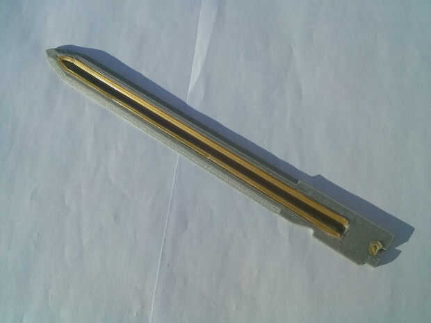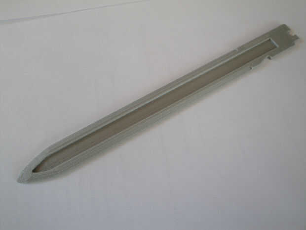 Ahora usted puede poner la hoja dentro de la "base". Ya que lija antes, no debería ser un problema ahora. Aún así, si nada se siente un poco "oxidado" o pegado Compruebe donde proviene y a la arena! La hoja debe deslizarse fácilmente en la base. Si con las rayas, la hoja ahora se atasca en la apertura de la base, necesita ampliarla, o las rayas en la parte superior, para reducir la altura de la arena. Mantenga las "cerraduras" mientras empujas la hoja dentro de la base, porque sin la cubierta, puede saltar cuando presiona. Cuando la hoja está totalmente dentro, compruebe si la cerradura mantiene la hoja en su lugar, o si no tiene espacio suficiente para desplegar. Si esto sucede que es necesario suavizar un poco la cerradura, o ampliar el bloqueo en la hoja.