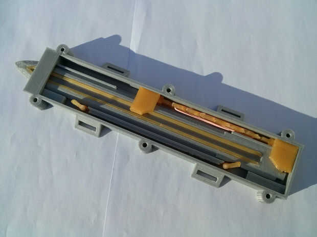 Vas a necesitar los "deslizadores", una pequeña banda de goma y la Asamblea anterior.