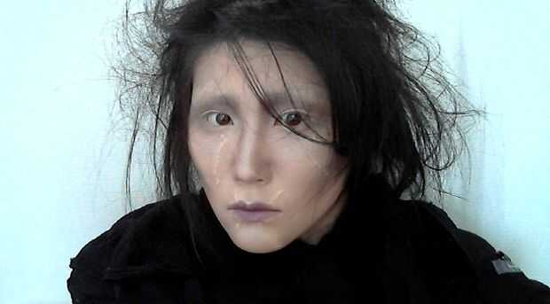 Sombra de ojos marrón, púrpura, blanco y negro mate (si no tienes el color mate es demasiado fino pero le dejará un poco "reluciente")