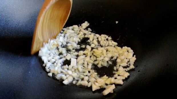 Freír los ajos picados a fuego medio por 2 minutos o hasta que el fragante.