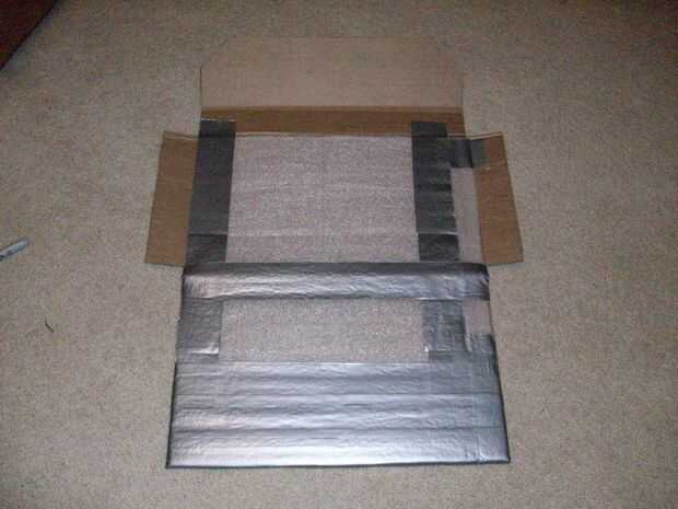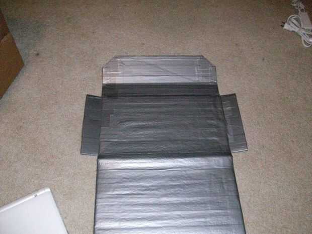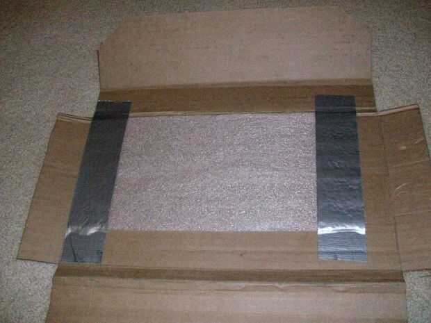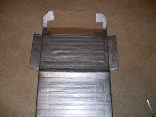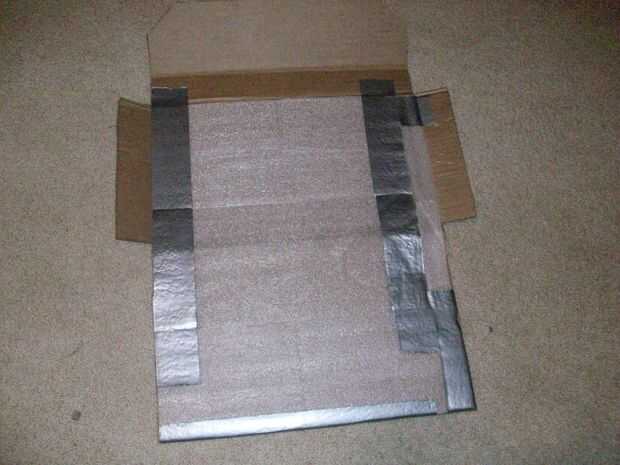 En cualquier caso, lo que tienes que hacer ahora es recoger el material de relleno que vas a utilizar y colóquela. Asegúrese de que cubre las áreas en su caso que usted quiere demasiado y cortar al tamaño y la forma. Tenía las tiras de las cosas, así que tuve un poco la capa de forma (ver abajo fotos). También, asegúrese de que no a las bisagras de las aletas en la posición plana de la cinta, tijeras y cortes en la cinta pueden ser tus aliados más grandes aquí. Cubrir todo en cinta.