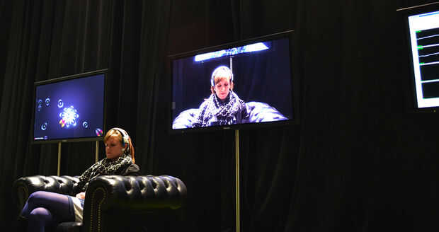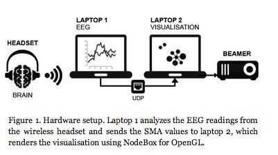 Inalámbrico controles EEG-auricular de un sistema de partículas interactivas y alrededor de las luces.