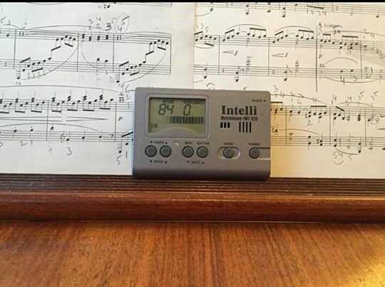 Voer nu het tempo een beetje op (mín. 100 bpm). Cuando je voelt dat dit niet lukt speel het dan eerst nog op een traag tempo totdat je voelt dat je het muziekstuk op dat tempo volledig onder controle hebt om dan corceles te versnellen tot de snelheid die (meestal además de titel) op het stuk staat.