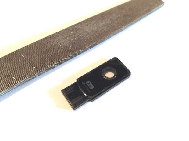 Mi pendrive cabe entre los pasadores perfectamente ancho, pero no estaba demasiado contento con la altura era, así que decidí pulir las piezas de plástico superior e inferior para hacerla más fina. No tienes que hacer nada de esto, depende de cómo desea que se vea.