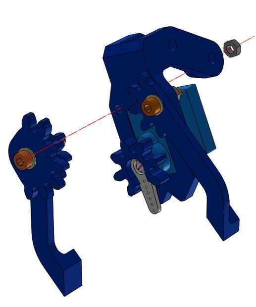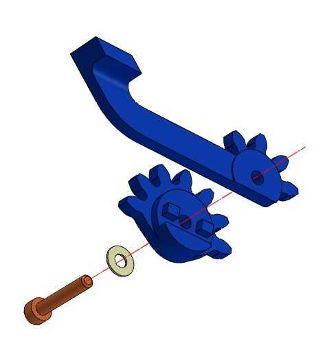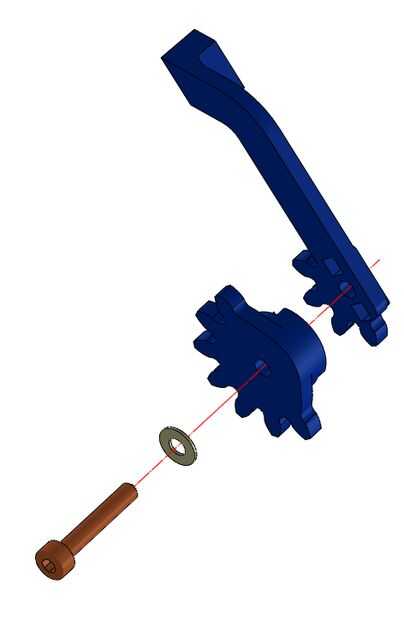 Inserte las dos clavijas del engranaje conducido el dedicado en el dedo izquierdo que el engranaje conducido también tiene un hombro que tiene que estar alineada con la parte lateral del dedo. Si encuentras dificultades acoplándolos, reducir la interferencia usando un archivo.