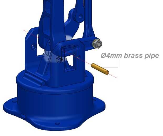 Para unir la base con las principales armas Alinee el eje de las piezas y la inserción de un lado el tubo de latón 24mm de largo.