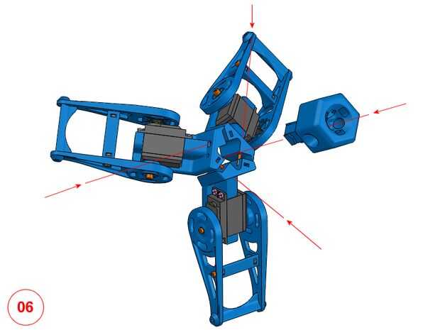 (6) de la gota en su vivienda las tuercas M3 y conecte los tres brazos de la unidad principal entre sí mediante M3x... tornillo