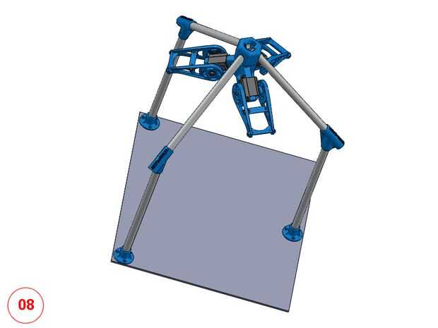 Para colgar el robot y mantenerlo en posición, diseñé un elementos central y tres patas. Las piernas están compuestas cada uno por dos impresos de partes y dos tubos de aluminio