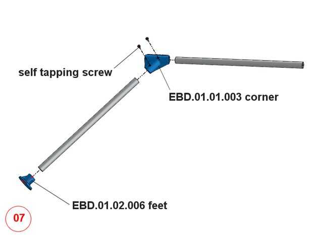 Introduzca ahora el tubo vertical en la caja restante y fijarlo del mismo modo que el anterior y poner en la parte inferior de los pies de"EBD.01.02.006"