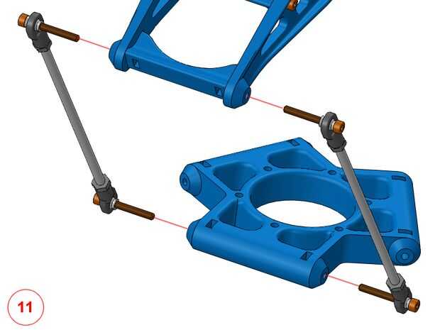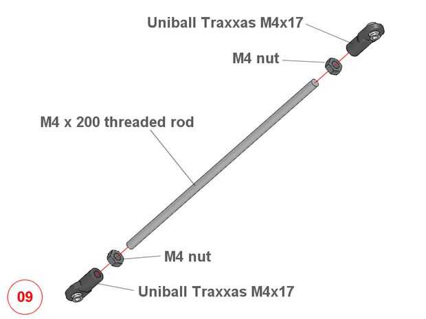 (9) cada conexión de los brazos está compuesto por una varilla roscada M4 200mm de longitud y dos traxxas ojo barra fijada por dos tuercas M4.