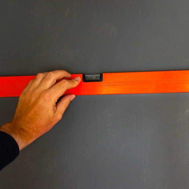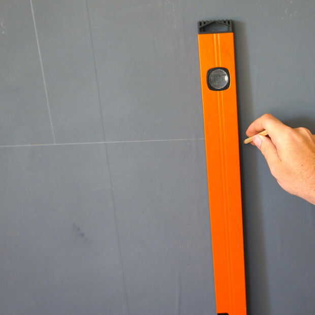 • Utilice un nivel y un lápiz para marcar en la pared donde y cuánto desea que las placas que aparecen.