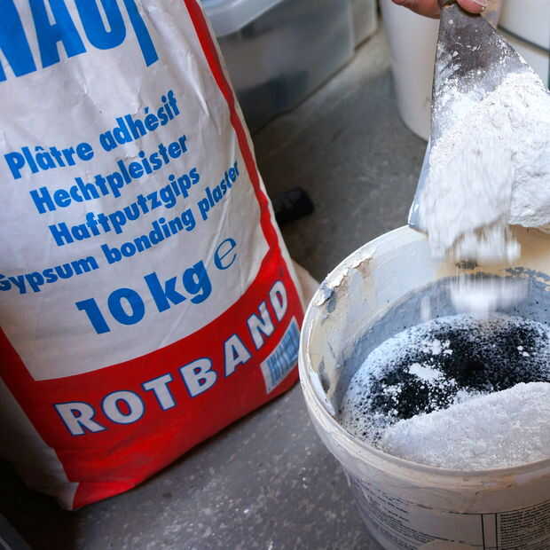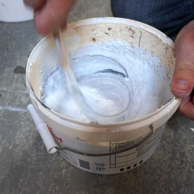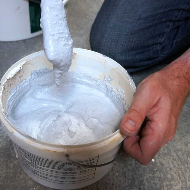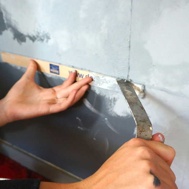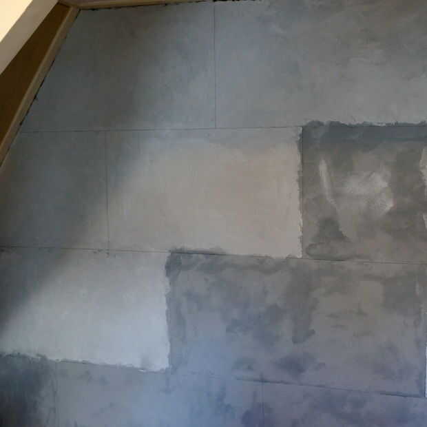 • Use una regla y una espátula para 'rayar' los bordes de las placas en el material cuando esté todavía mojado.
