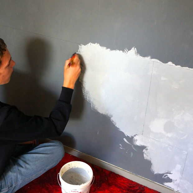 • Pintura de la mezcla en la pared con pequeños movimientos al azar