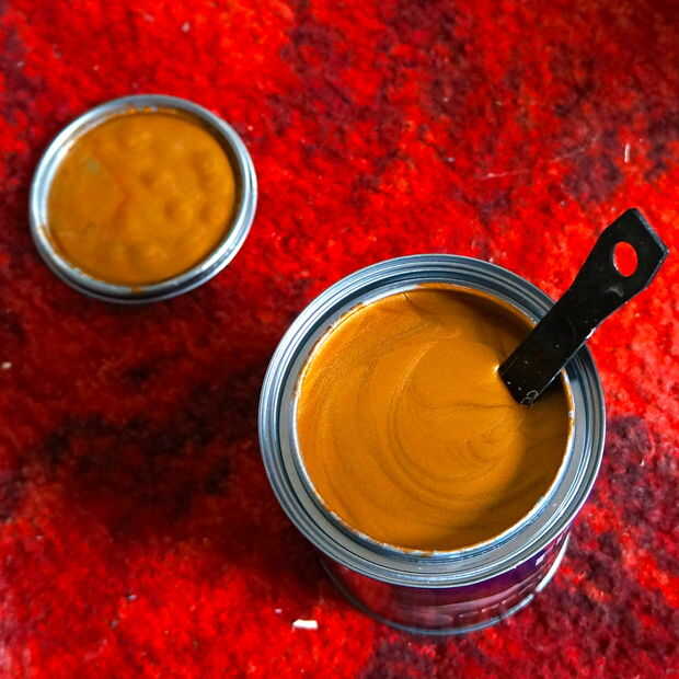 Ahora es el momento para pintar sobre la pintura metalizada. Usé un color cobre/oro.