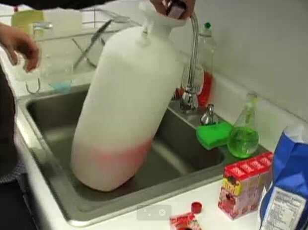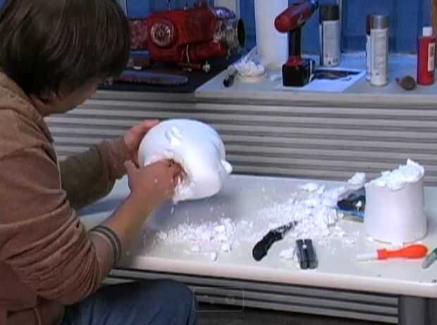 1. maniquí de prueba de 2. falsa cabeza (utilizamos espuma de poliestireno) 3. espuma 4. líquido látex (preferiblemente en un color de piel) 5. jardín pulverizador 6. válvula de 7. 6 botellas de colorante de alimento 8. el globo