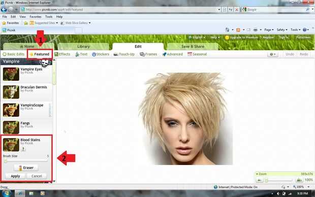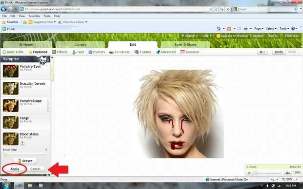 Añadir lágrimas sangrientas a la imagen y la sangre gotea de la boca. Cuando haya terminado de hacer cambios, haga clic en "Aplicar".