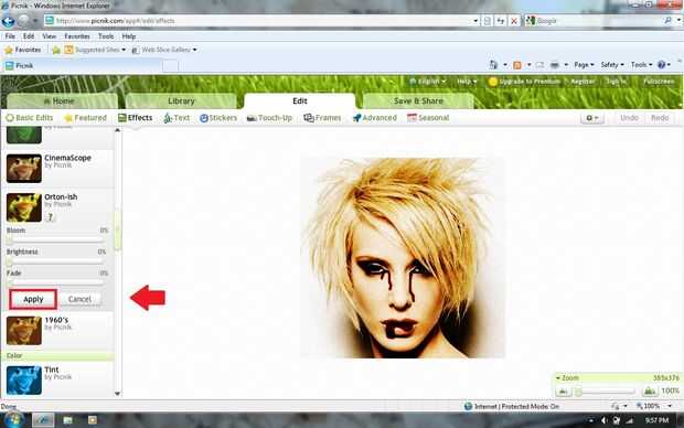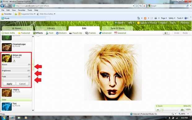 Ahora ir en el sentido de "Orton-ish" y establecer todas las opciones (floración, brillo y se descolora) 0%. Haga clic en "Aplicar". Su efecto de película de terror miedo ya está terminado!