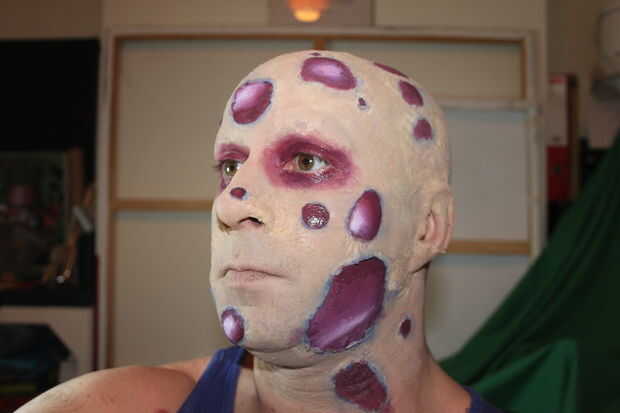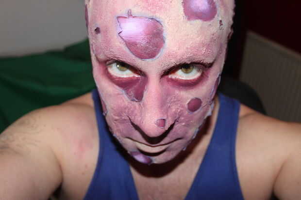 He visto este efecto de maquillaje un par de veces y pensé que le daría un ir. Es muy fácil de hacer.Se necesita:Látex líquidoVarias pinturas de grasa (tono rojo, negro y carne)Fundación y configuración en polvo (no necesario pero ayuda para mezclar)