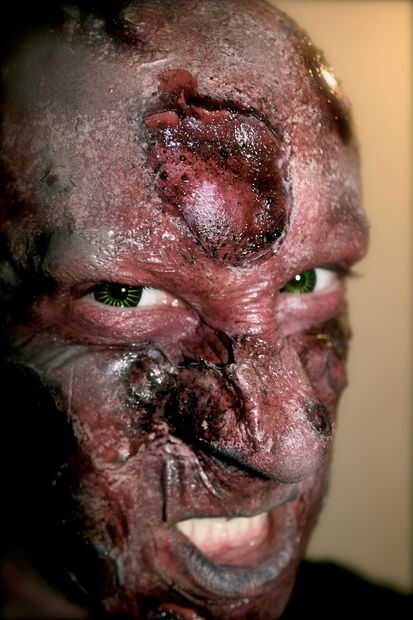 Stipple en algo de maquillaje oscuro para la nariz, labios y ojos ares para crear la inhalación de humo.