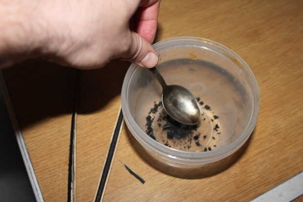Aerosol laca negro teniendo cuidado de no para respirar en los humos al rociar. Tenga cuidado de no sobrepulverización en esta etapa o puede estropear el efecto.