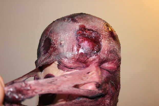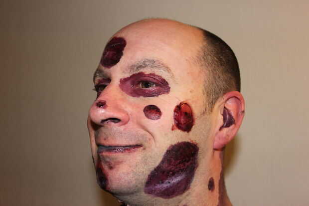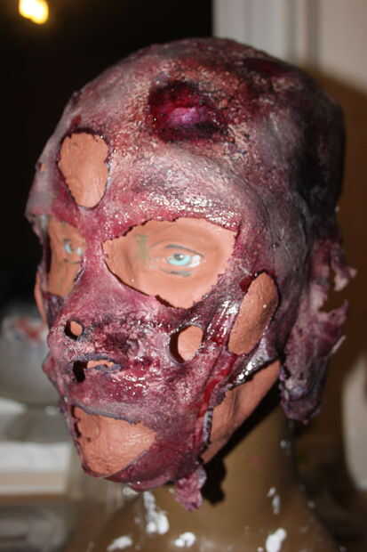 Luego de el látex se puede ver que prácticamente salió de una pieza completa y con un poco pegamento adhesivo Pros Aide te podría volver a aplicarlo y añadir algunos más sangre para ocultar las costuras.