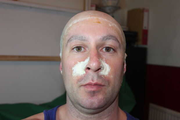 La nariz simplemente Repita el proceso por encima de los lados de las fosas nasales con cuidado para no obtener látex dentro de la nariz.