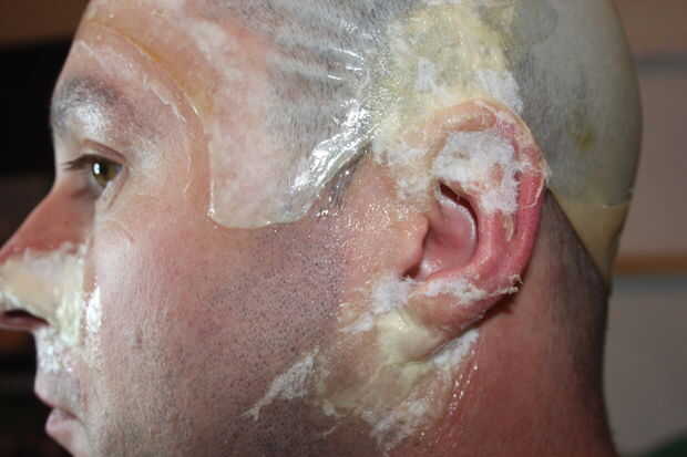 Inicie cubriendo la parte superior e inferior de los oídos con capas de tejido de la capa y látex líquido y seque entre aplicaciones.