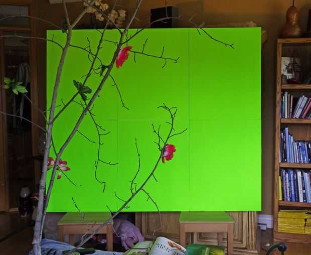 Si usted no necesita una pantalla portátil, puede únalos con cinta adhesiva varias hojas y virar toda la pantalla a la pared y luz de ambos lados (detrás del sujeto para que no tenga sombras) para incluso para colorear. Algunas llaves de croma son más sensibles que otros y no tolerará el menor pedacito de diferencia de color en su pantalla verde (Afortunadamente, las teclas de ahora que trabajo con Movie Maker 6.0 son muy buenas en perdonar tal diferencia y eliminar el fondo verde entero).