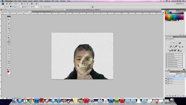 seleccione la capa de cráneo y usar la herramienta Borrador para borrar lo que parte de la cara que quieres lo mismo