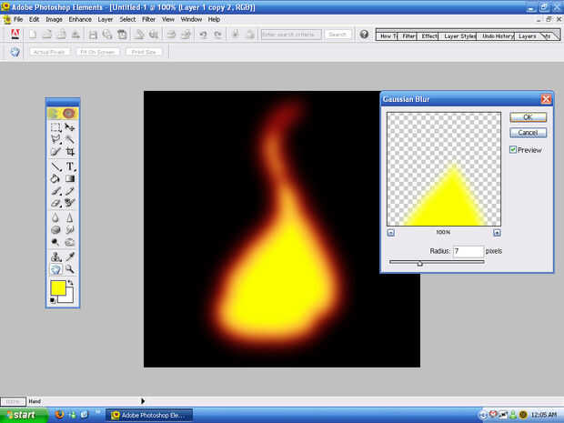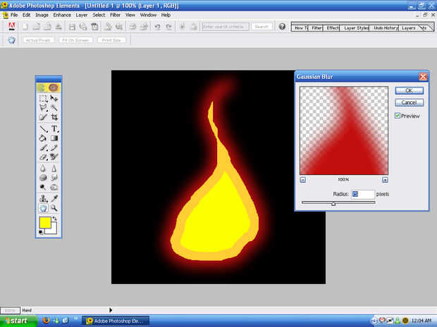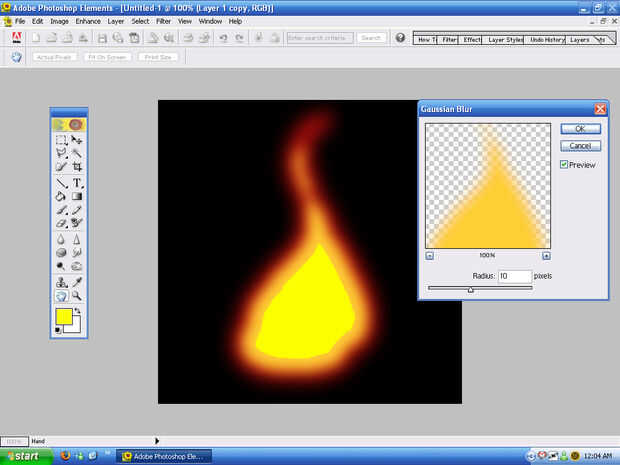 Pasar a la naranja. Hacer los mismo filtros > gaussian blur truco, pero disminuir el radio un poco este tiempo.