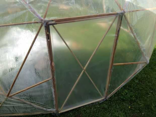 Añadir algunos Plasticos extra alrededor de puertas y ventanas para evitar el viento que sopla a través de la estructura cuando no es deseable. Si tienes viento proyecto podría tener vela gigante en su jardín.